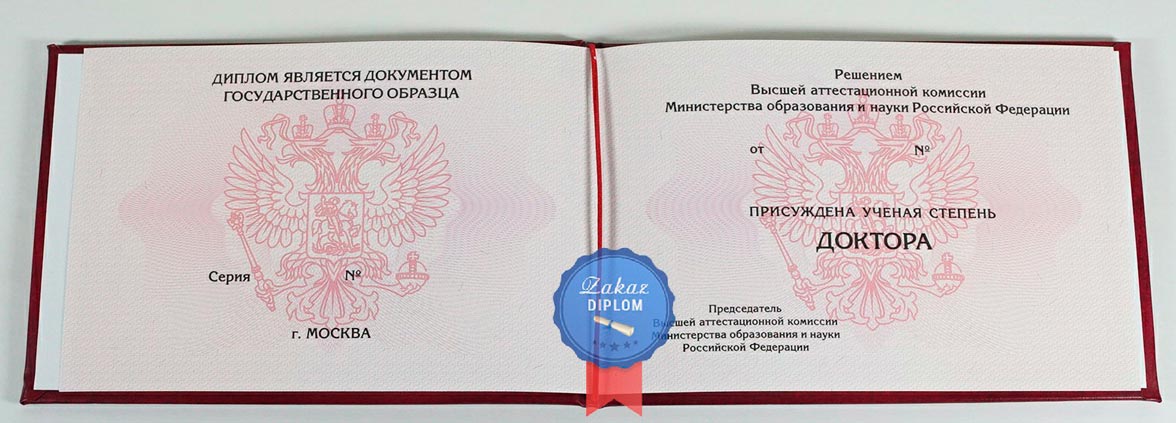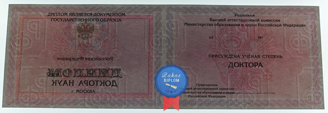 Прежде, чем решите приобрести диплом доктора наук в городе Химки, детально рассмотрите каждую мелочь, вплоть до визуального изучения действующего образца данного документа. Мы гарантируем качество и своевременность. Если вы ограничены во времени, время с момента получения заказа до вручения готового диплома может занимать менее суток.